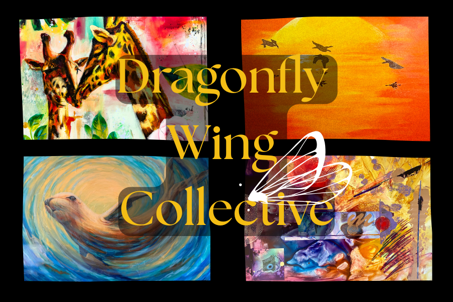 We are the women of the Dragonfly Wing Collective. Like the dragonfly, which is a symbol of transformation, agility, and vision, this exhibition celebrates the creative force and strength found in unity. We are four wings in motion, lifting one another through imagination. This is more than a collection of artwork, it is a representational journey of women helping women rise, create, and transform. Each piece reflects our shared journey of finding power in collaboration.