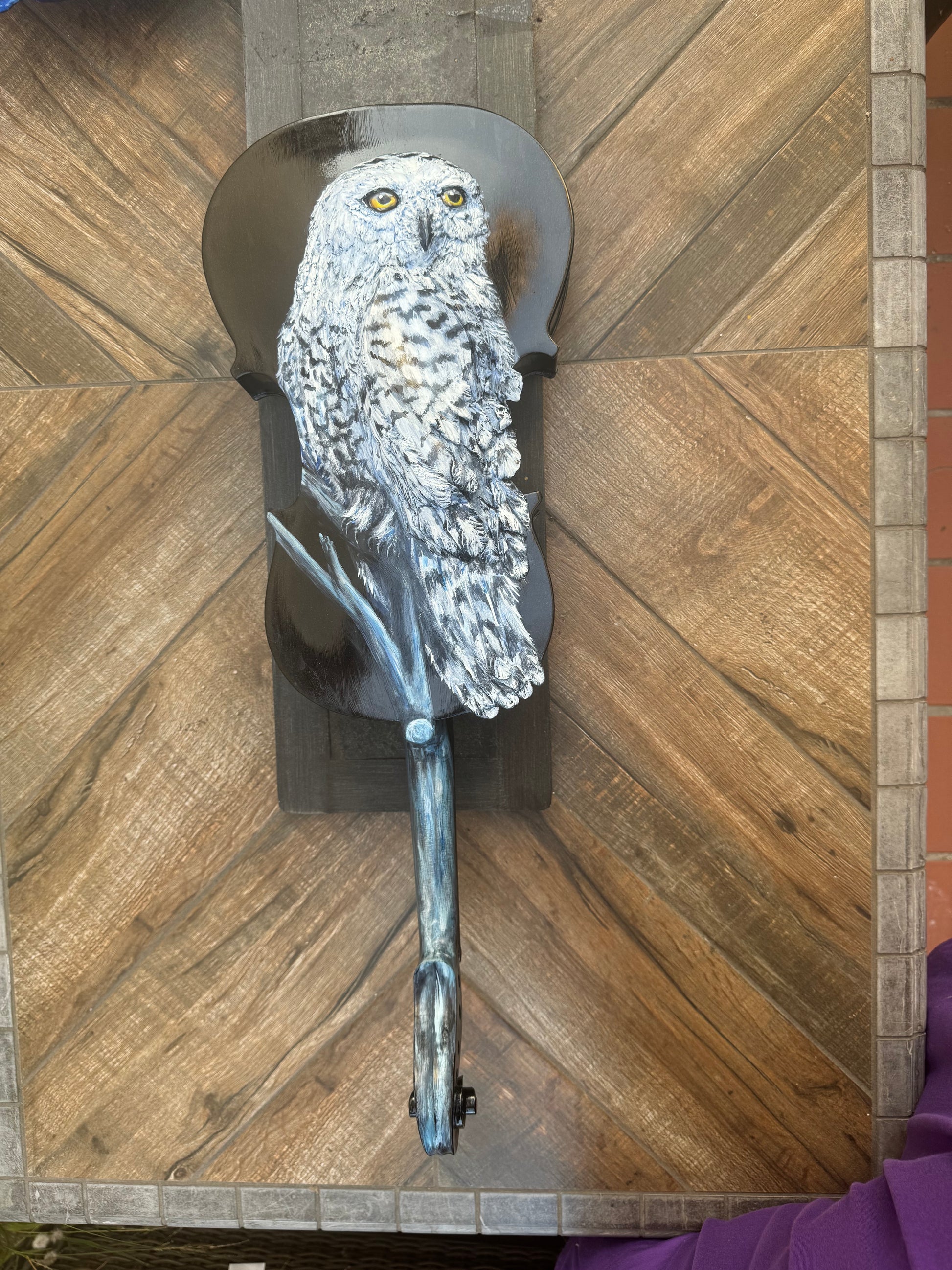 Owl sculpture on violin